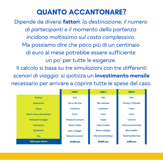 Viaggiare è un desiderio molto radicato nell’uomo. Oggi grazie alla tecnologia è possibile volare dall’altra parte del mondo nel giro di poche ore. Ma spostarsi costa, tanto. Per questo motivo, la vacanza dei sogni andrebbe pianificata con un certo anticipo, in modo da poter accantonare i risparmi necessari senza “tirarsi il collo”.